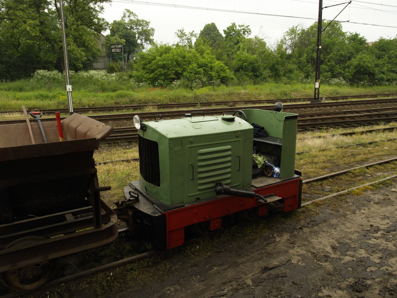 Lokomotywa Ns1 z dwiema kolebami przy peronie.
