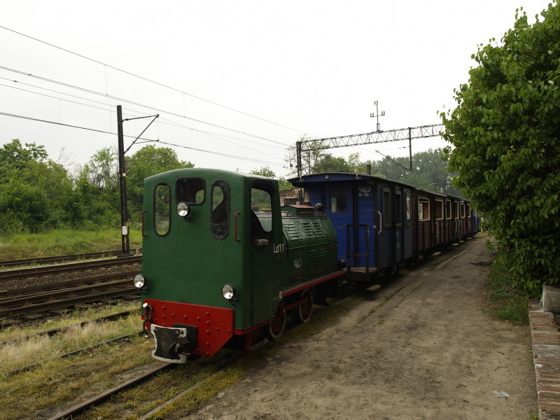 Pociąg turystyczny oczekujący na porę odjazdu przy peronie.