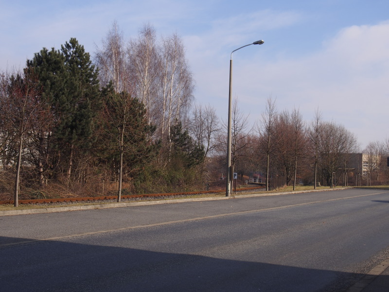 Tor w±ski dochodz±cy do Brückenstraße, wzdłuż której będzie szedł do stacji Zittau Süd.