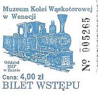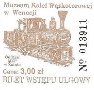 Bilety wstępu do Muzeum Kolei W±skotorowych w Wenecji z roku 2003 (ulgowy i normalny).