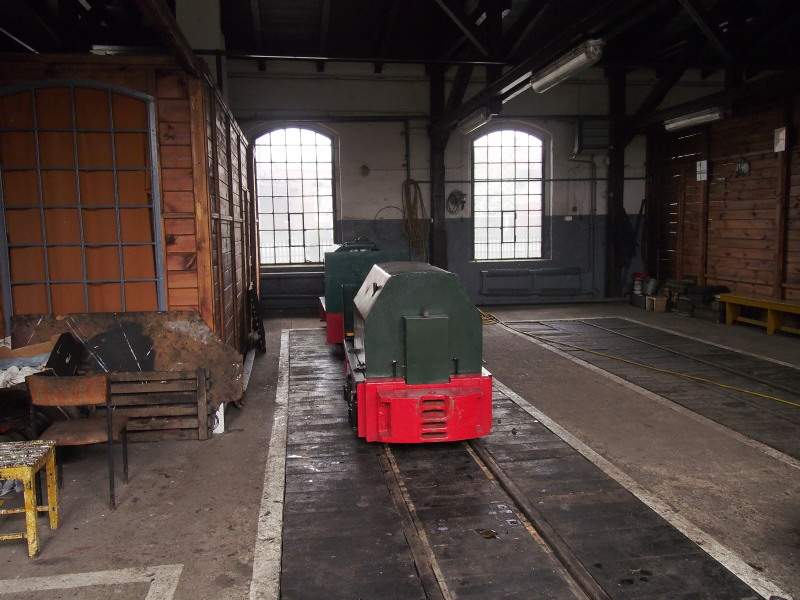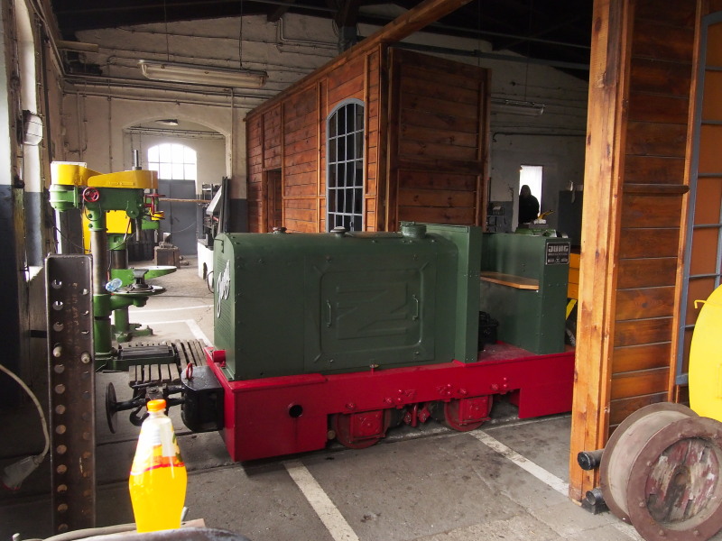 Kolejne małe lokomotywy spalinowe w lokomotywowni.
